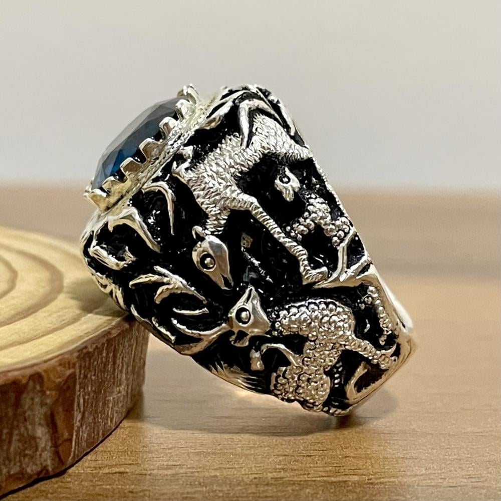تصميم أنيق يعكس شخصية قوية وذوق رفيع، مصنوع من فضة عيار 950 بصياغة متقنة على يد صياغة الشريف. يزين الخاتم حجر توباز برازيلي بلون لندني فاخر، يمنحه حضوراً راقياً ولمسة فخامة مميزة.