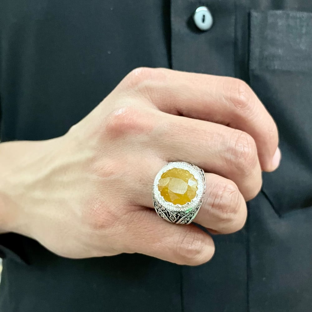 خاتم فضه رجالي بحجر زفير اصفر افريقي