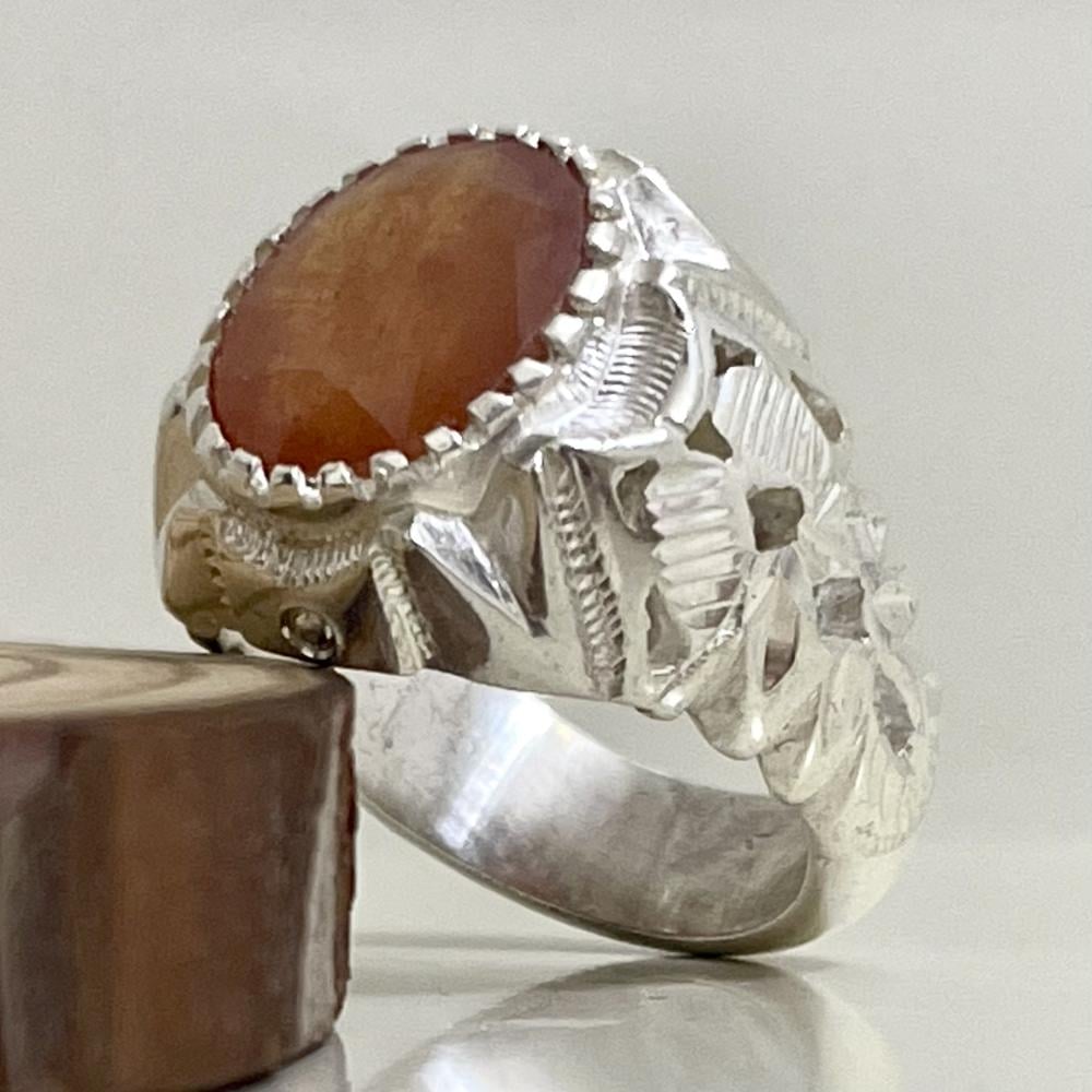 خاتم فضة رجالي بحجر عقيق زفير افريقي اصفر