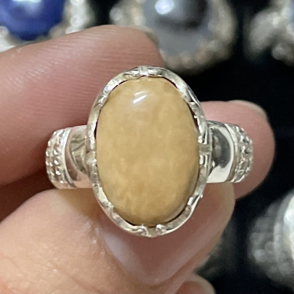 خاتم فضة رجالي بحجر عاج فيل طبيعي