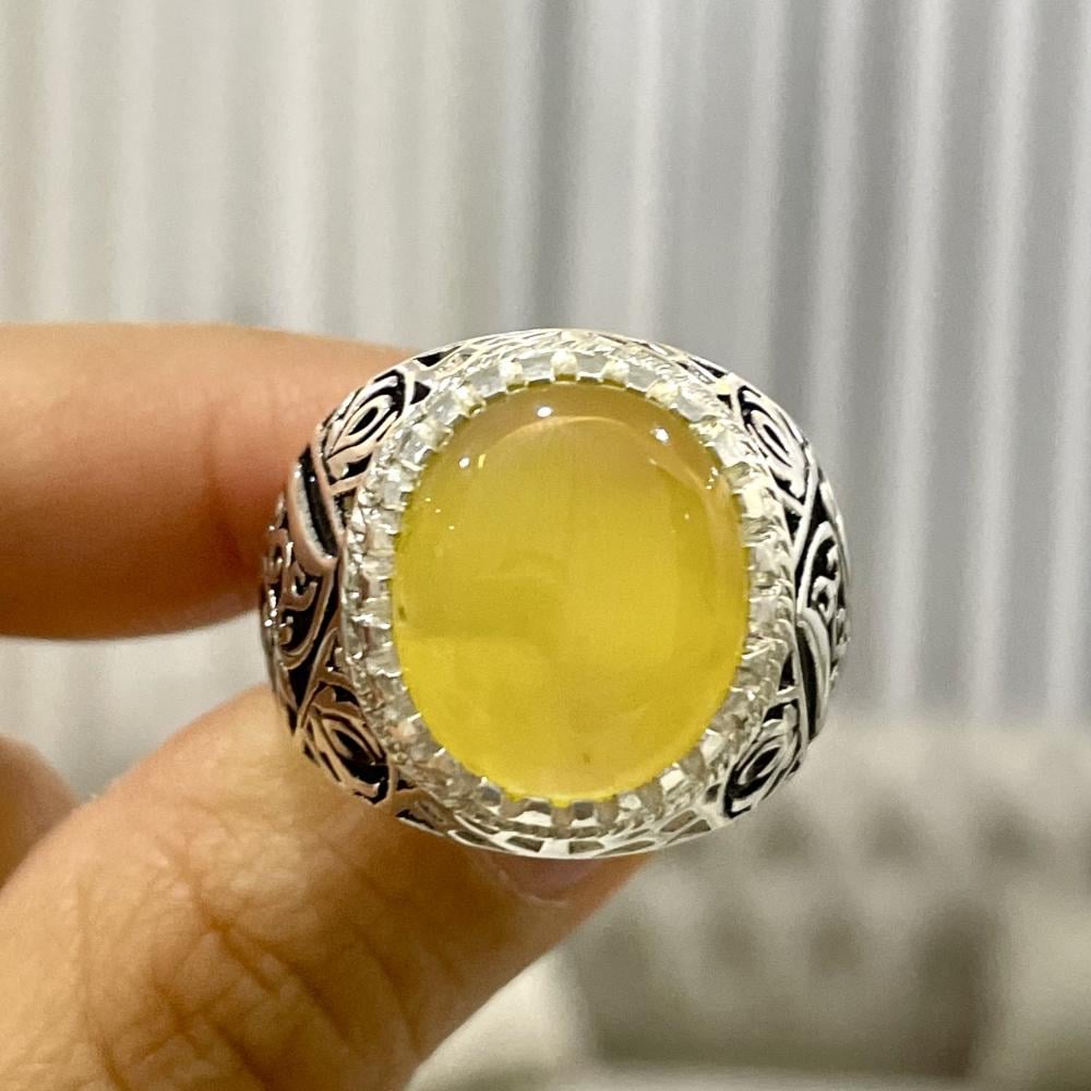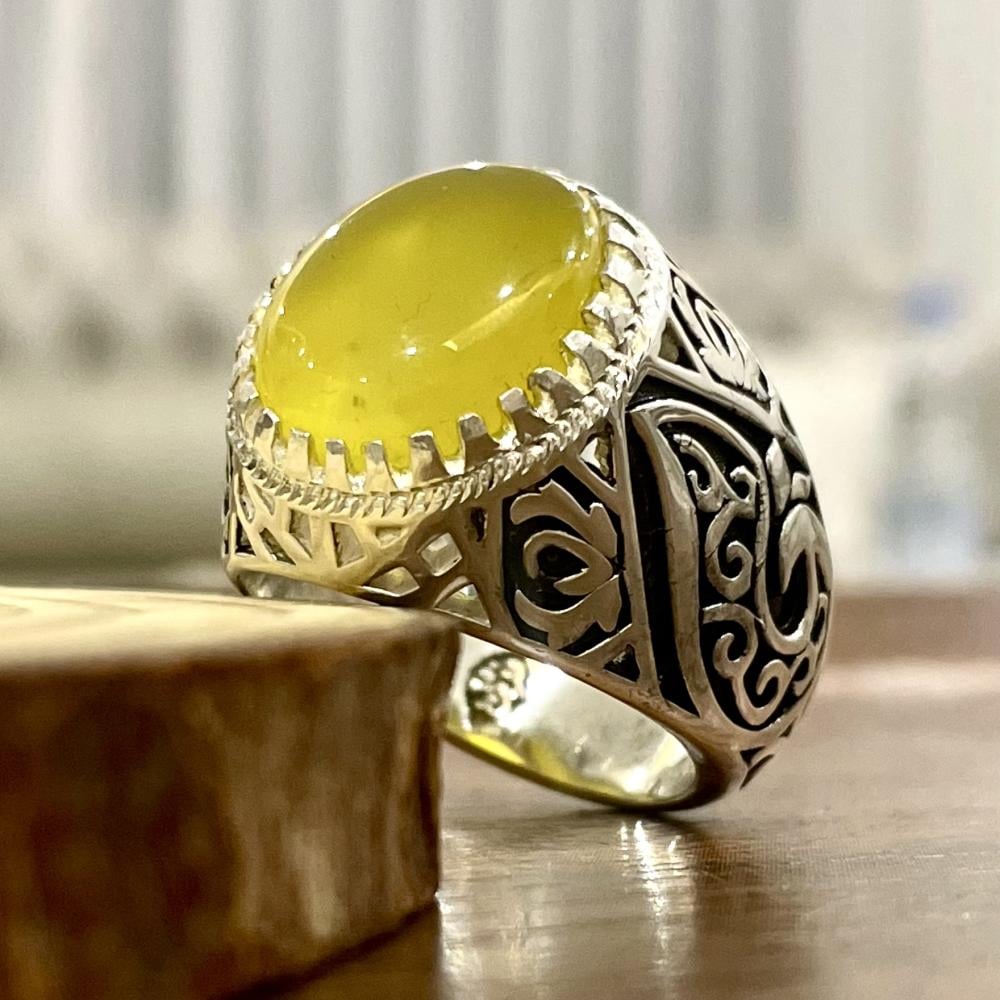خاتم فضة رجالي بحجر عقيق خرساني اصفر شرف الشمس