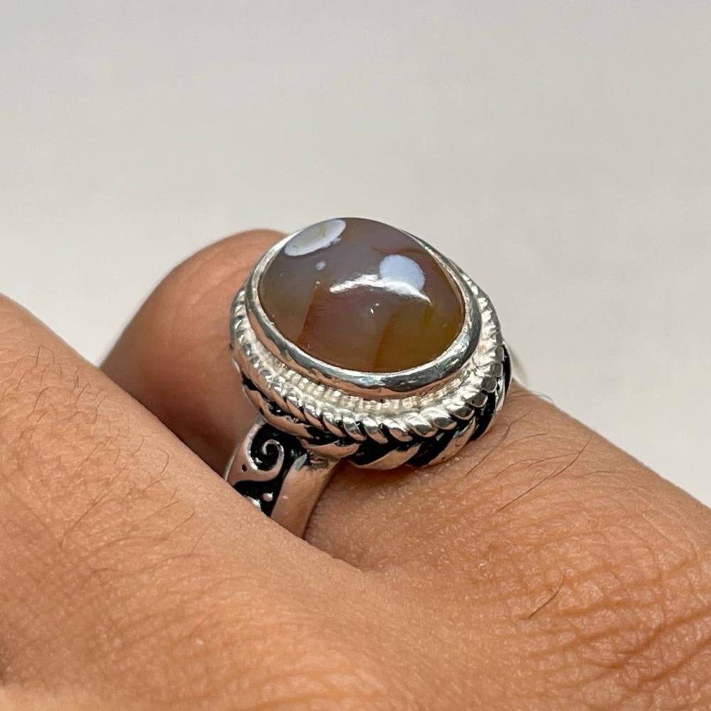 خاتم فضة رجالي بحجر عقيق سليماني طبيعي – موديل ملكي - ليزر