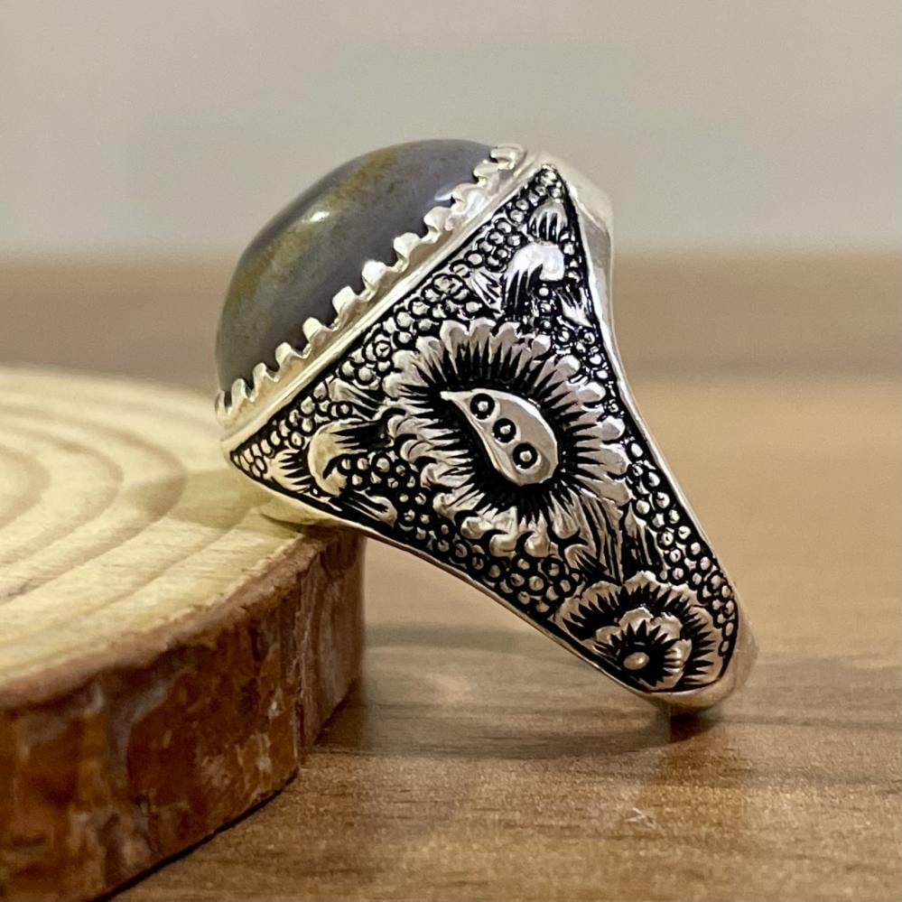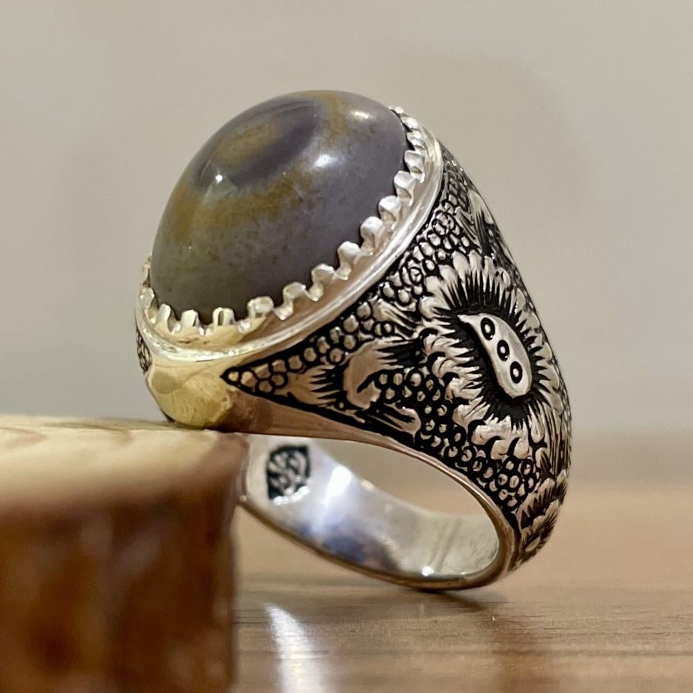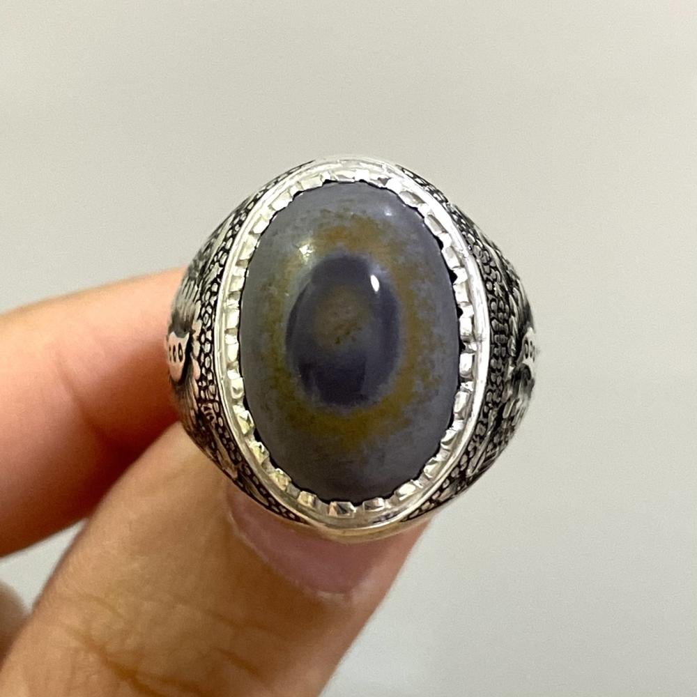 خاتم فضة رجالي بحجر عقيق سليماني طبيعي