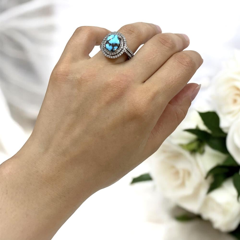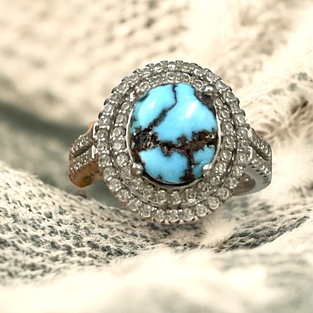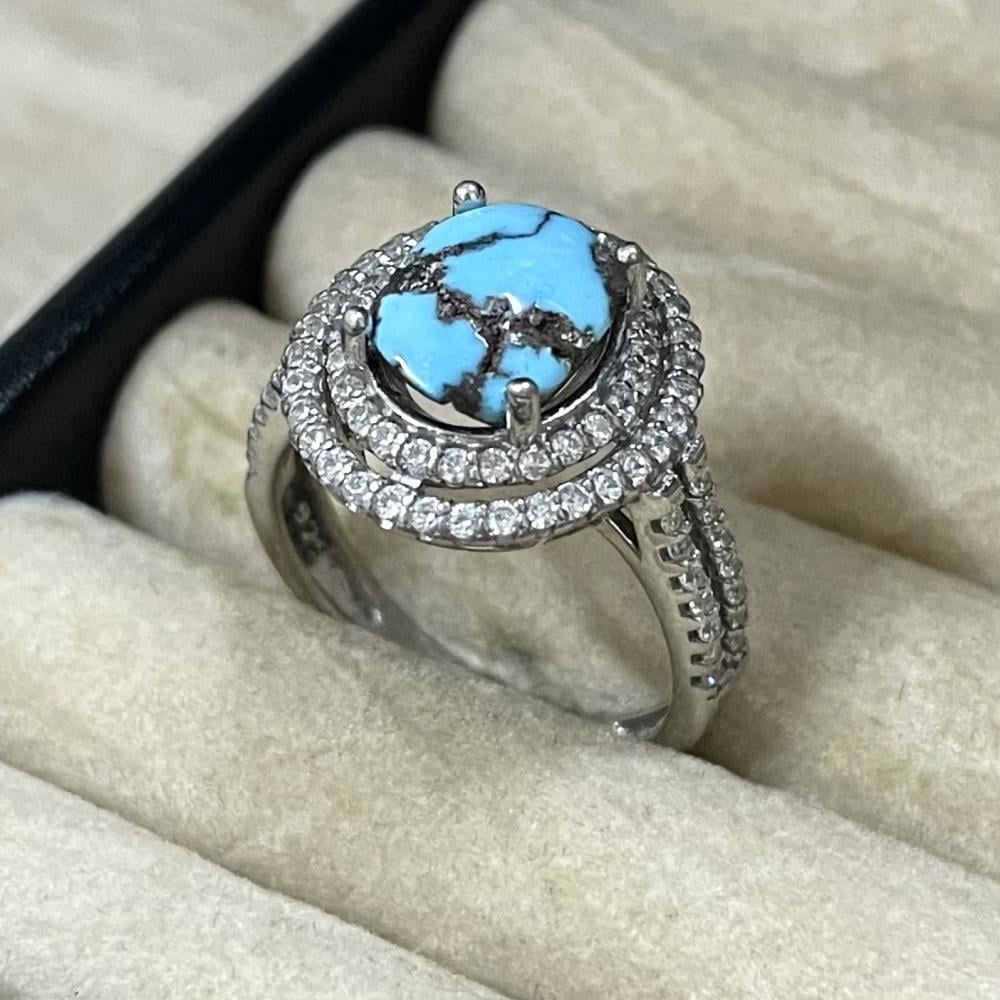 خاتم نسائي بحجر فيروز سيناوي