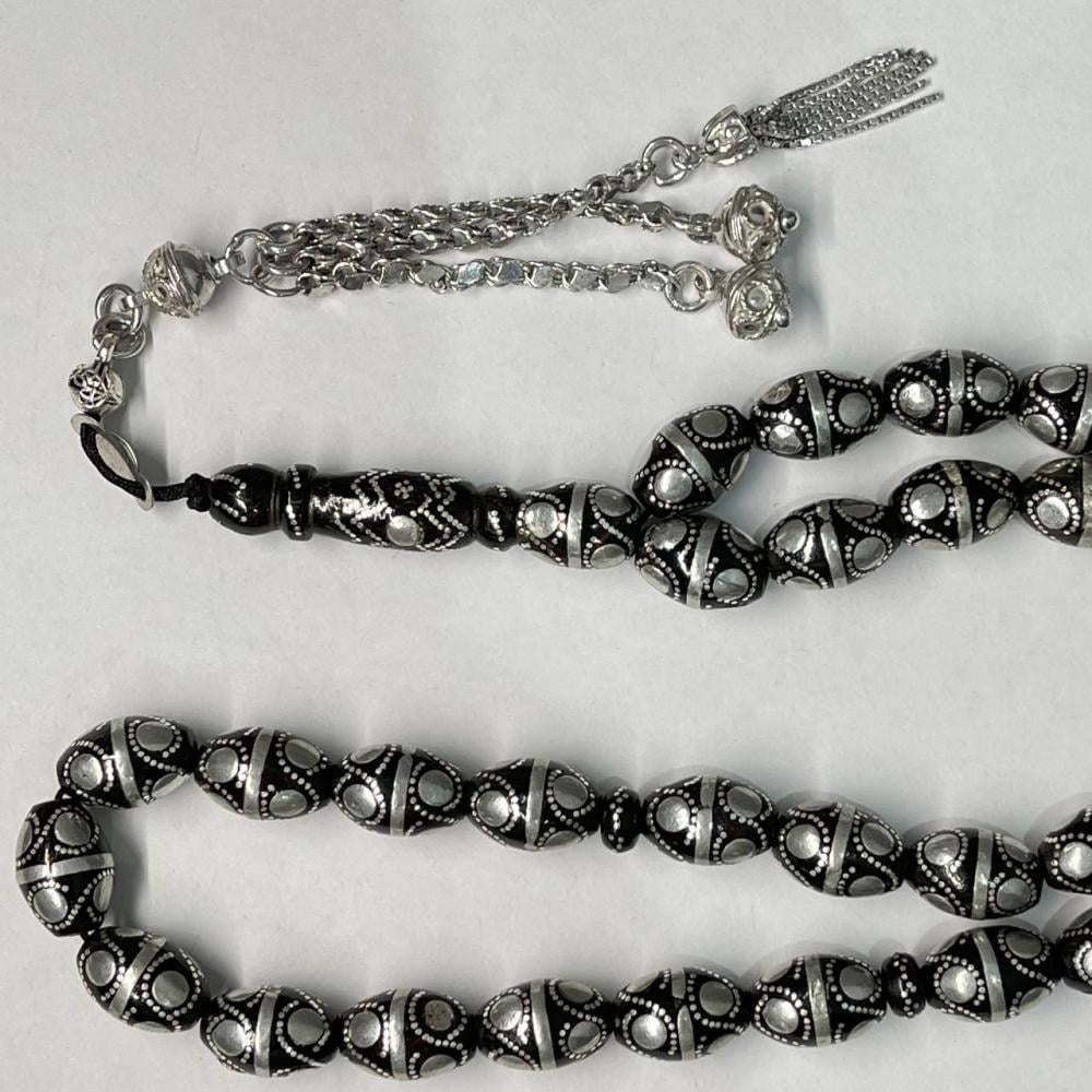 مسباح يسر طبيعي مطعم بالفضة – 33 تسبيحة بتمليكة فضة