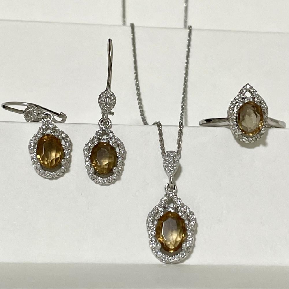طقم فضة نسائي 3 قطع بحجر سلطنايت متغير الالوان مرصع زركون سويسري ( كريستال )